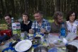 В очередной раз пришлось развенчать прогностические способности Гидрометеоцентра, погода была великолепна, ни следа обещанных затяжных дождей. Прекрасные лесные тропы, переслески и поля раскрашенные летними красками, аромат полевых цветов – все радовало ходоков. Обед был обещан у второго по ходу озера, где еще прошлым летом не было мусора и автоотдыхающих. Глубокое разочарование! Берег разъезжен автомобилями и плотно заселен гоблинами. Звучит традиционная для мест обитания вандалов громкая музыка описать которую можно словами «Быц..цц – ум – быц..цц-ум...». Хлам, одноразовая посуда, бутылки... Прочь отсюда. День в зените. Стало жарко. Привал объявлен возле магазина в Алексеевке-2. До следующих озер 2 – 3 км. Рыдваны на подходе говорят о том, что и здесь нас ждет разочарование...Збылось. В горах отбросов, прямо на помойке, устроенной на берегу озера отдыхают члены клуба владельцев автомобилей “Tucson” www.tucson-club.ru (вид на место отдыха показан на фото выше). К нашему счастью, поcледнее по ходу озеро, получившее название озеро Лилий, свободно от «автотуристов». Поход однодневный, но у владельцев палаток (пришлось тащить на себе), была замечательная возможность остаться здесь на ночь. Ночью пришли обещанные дожди, лило всю ночь и утро...Участок трека от озера до Красноармейска пройден не традиционно, хотелось обойти мокрый лес по дачным участкам. Впрочем, все напрасно. ..вода дырочку найдет!
